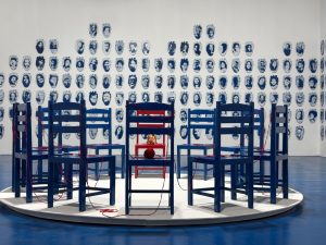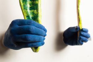 Se há uma presença constante em sua obra, é o azul. “O azul surgiu aos poucos e acabou se tornando uma espécie de eixo cromático do meu trabalho.” Para o artista, a cor está ligada à pele, ao tempo e a uma ideia de passado-presente. “É uma cor que permite construir atmosferas que oscilam entre o íntimo e o coletivo, entre o cotidiano e algo mais simbólico.”
