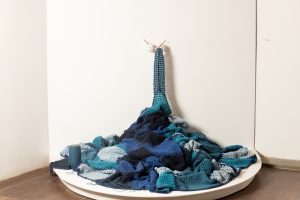 O azul cria unidade visual e, ao mesmo tempo, densidade conceitual. Ele funciona como camada que conecta narrativas e intensifica a atmosfera de memória que atravessa cada trabalho. Não é apenas escolha estética, mas ferramenta de construção simbólica.